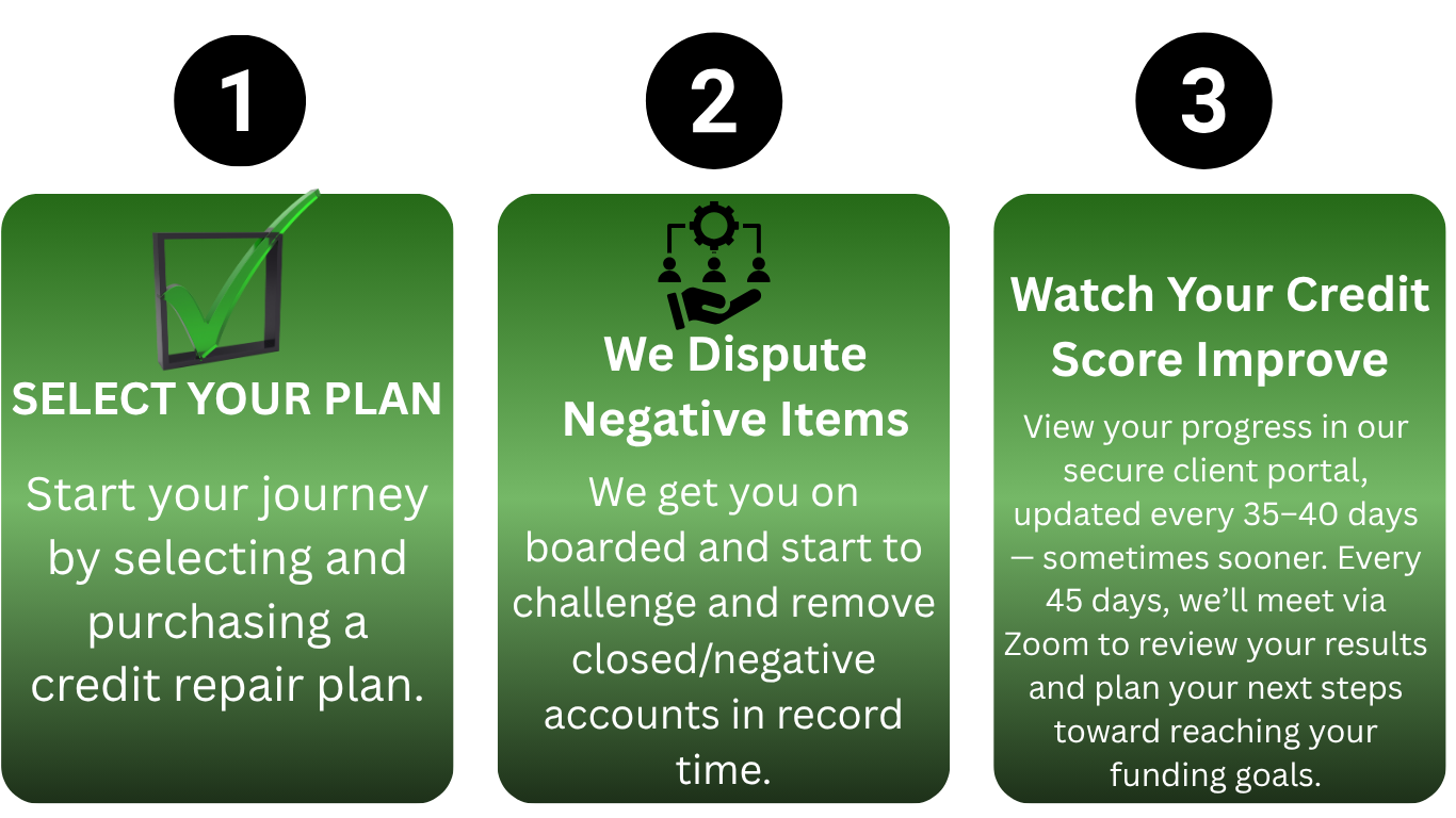 Whether you’re working toward homeownership, seeking business funding, or simply ready to take control of your finances, my team and I are here to help you win. We specialize in personal credit repair, business credit development, and funding strategies designed to position you for long-term success.